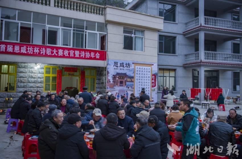 武陵深处藏诗韵,咸丰地面绽青春。1月24日,咸丰县曲江镇谢家的农家院落里,肉香甘醇,酒香清冽,诗香有味,翰墨醉东说念主,四方宾一又与诗词爱好者欢聚一堂,共同见证首届恩咸坊杯诗歌大赛圆满收官,共赴咸丰县诗词楹联协会年会的文化盛宴。这是一场以诗为媒的雅会,是一次文脉不息的嘉会,恰逢咸丰建县290周年,百般诗意融于乡土,万种情感凝于笔端,在冬日的白雪与碧水之间勾画出一幅诗酒相融、墨香盈庭的好意思好画卷。