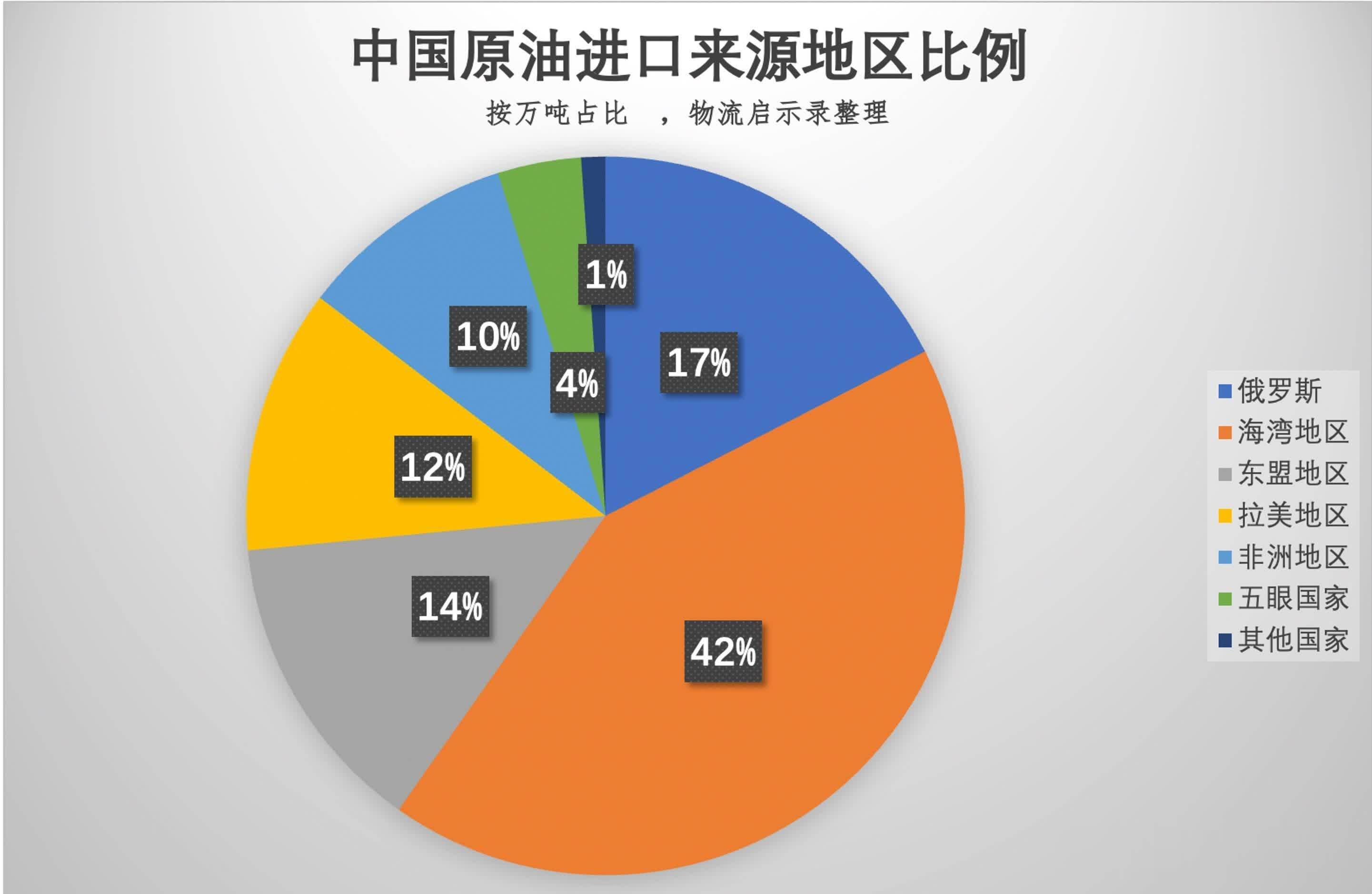 俄罗斯是我国原油入口最多的单一国度,数目占比17.43%,金额占比16.80%。