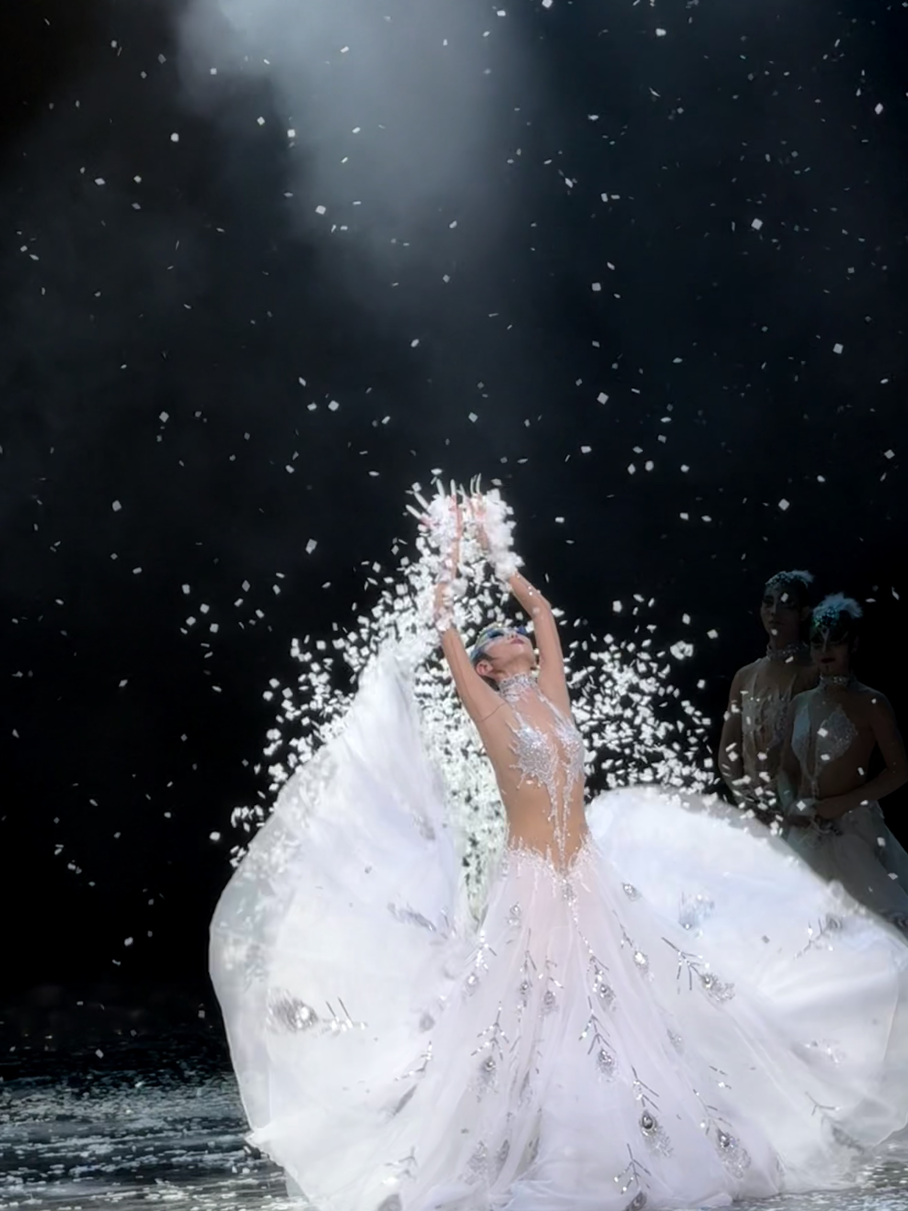在漫天“飞雪”中,她的指尖震憾如寒枝上的冰晶,脊背弯折似承雪的竹,仿若凛冬中迎雪独舞的“孔雀”。“我的生命也已步入‘冬天’,在舞台演出绎这个年岁段的况味,让我更懂当然之好意思,也更珍贵舞台上的每分每秒。”杨丽萍说。舞台之上>>